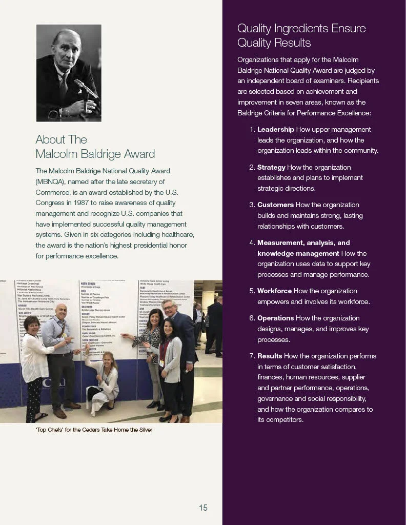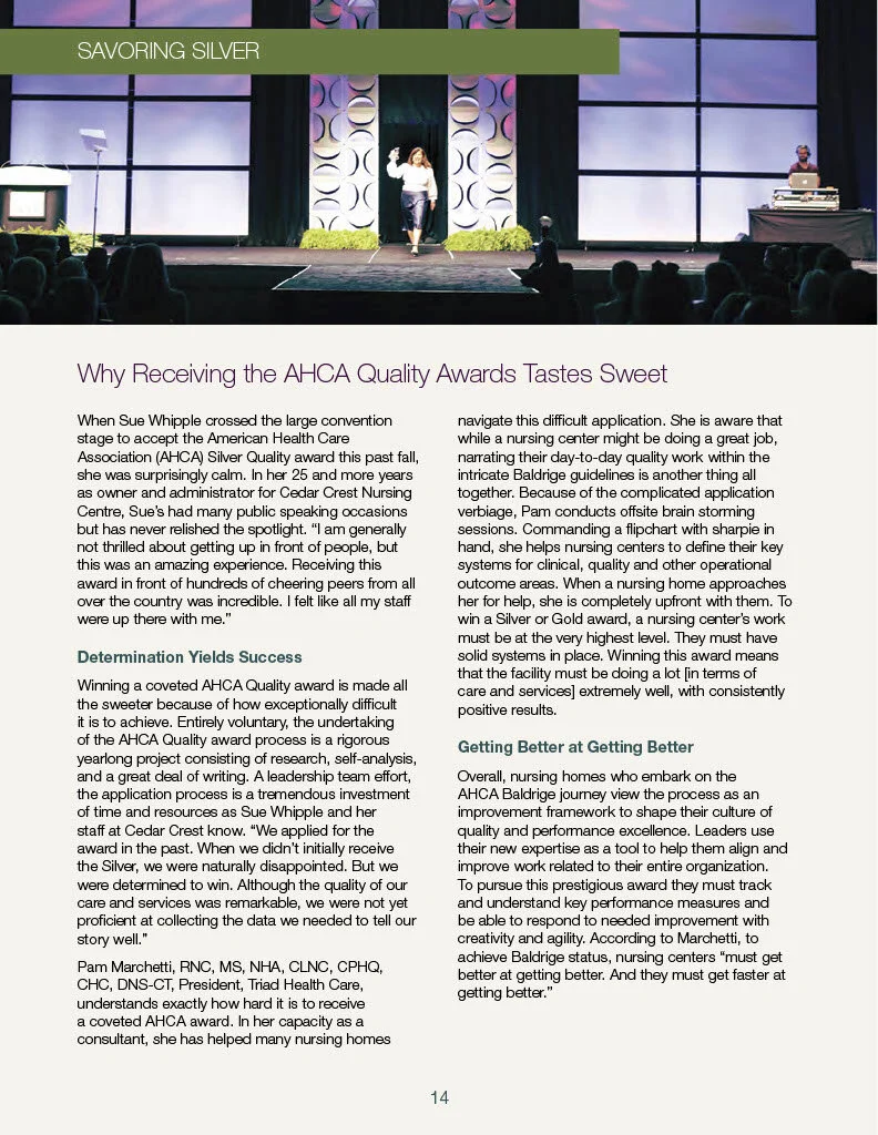 While It seems like the distant past, it was exactly a year ago in October that The Cedars was honored to receive The Silver Award from the American Health Care Association. I was extremely proud of my staff as I crossed the stage that day to accept the award on our behalf.